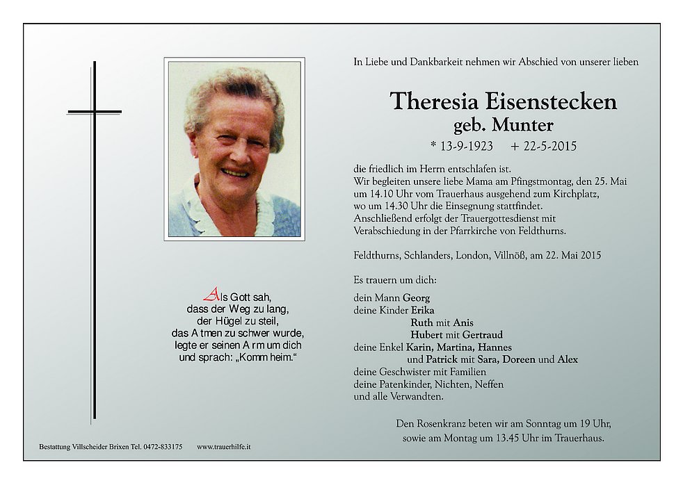 Wir begleiten unsere liebe Mama am Pfingstmontag, den 25. Mai
