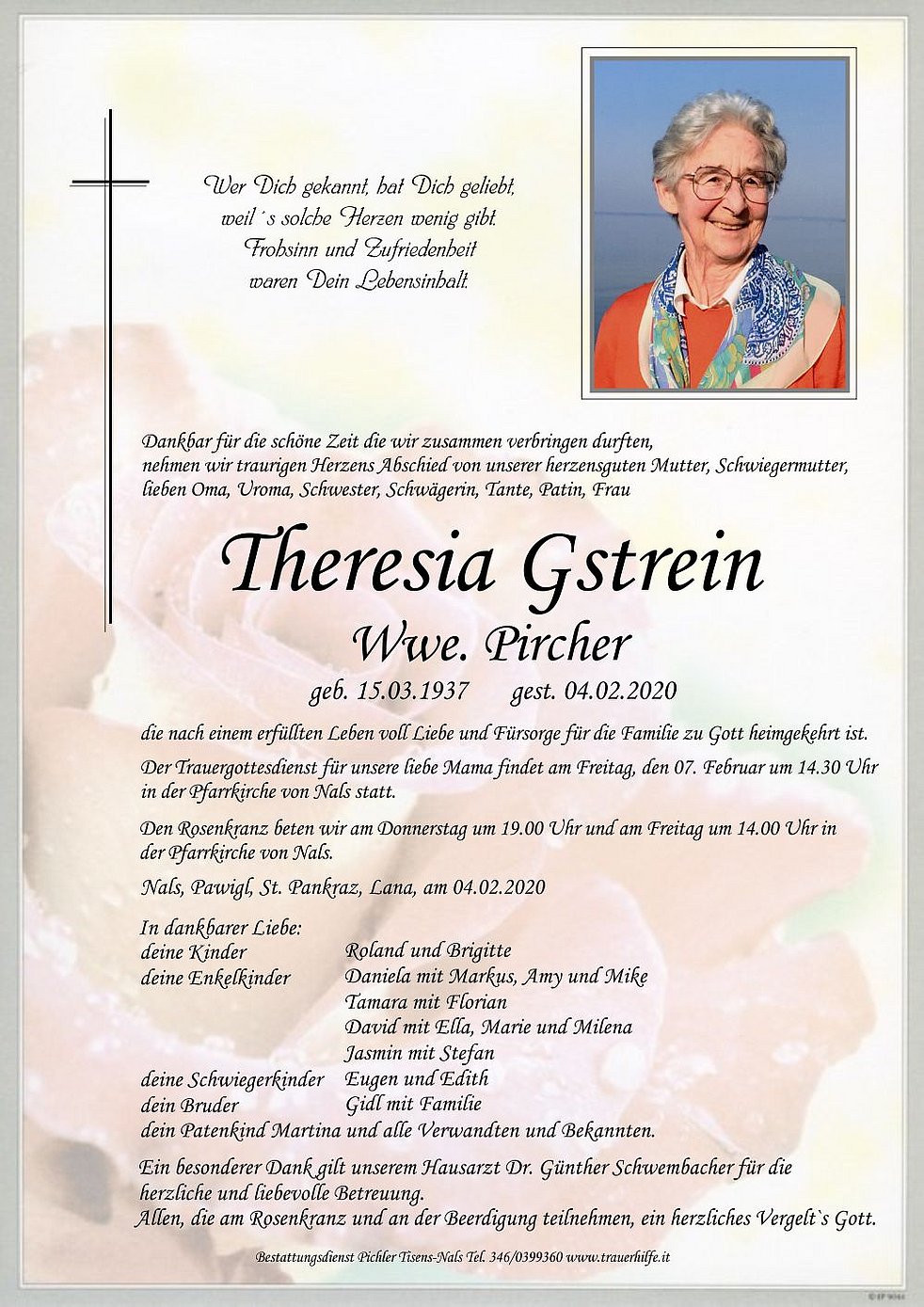 Der Trauergottesdienst für unsere liebe Mama findet am Freitag, den 07. Februar um 14.30 Uhr