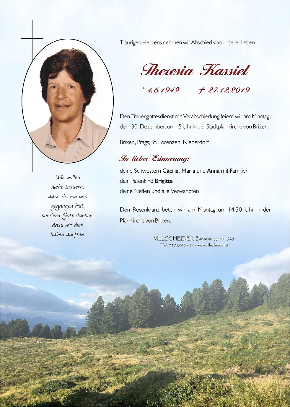 Trauerfeier: 30.12. - 14:30 Uhr Pfarrkirche Brixen