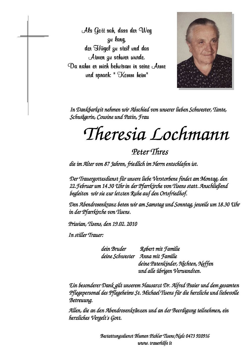 Der Trauergottesdienst für unsere liebe Verstorbene findet am Montag, den