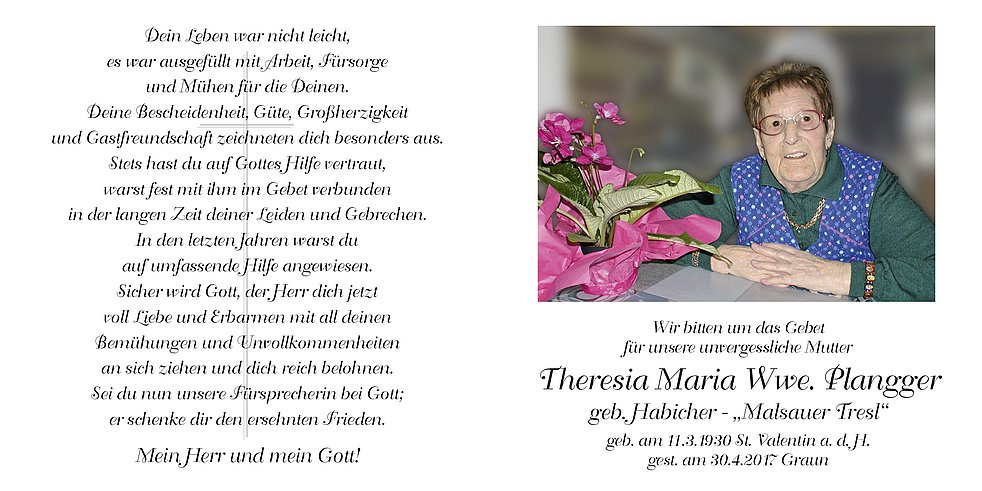 Ein herzliches Vergelt’s Gott für die Anteilnahme und das Gebet.