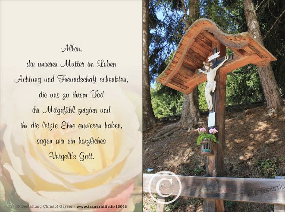 Allen, die an den Seelenrosenkränzen und der Beerdigung von unserer Mutter teilnehmen ein herzliches Vergelt’s Gott.