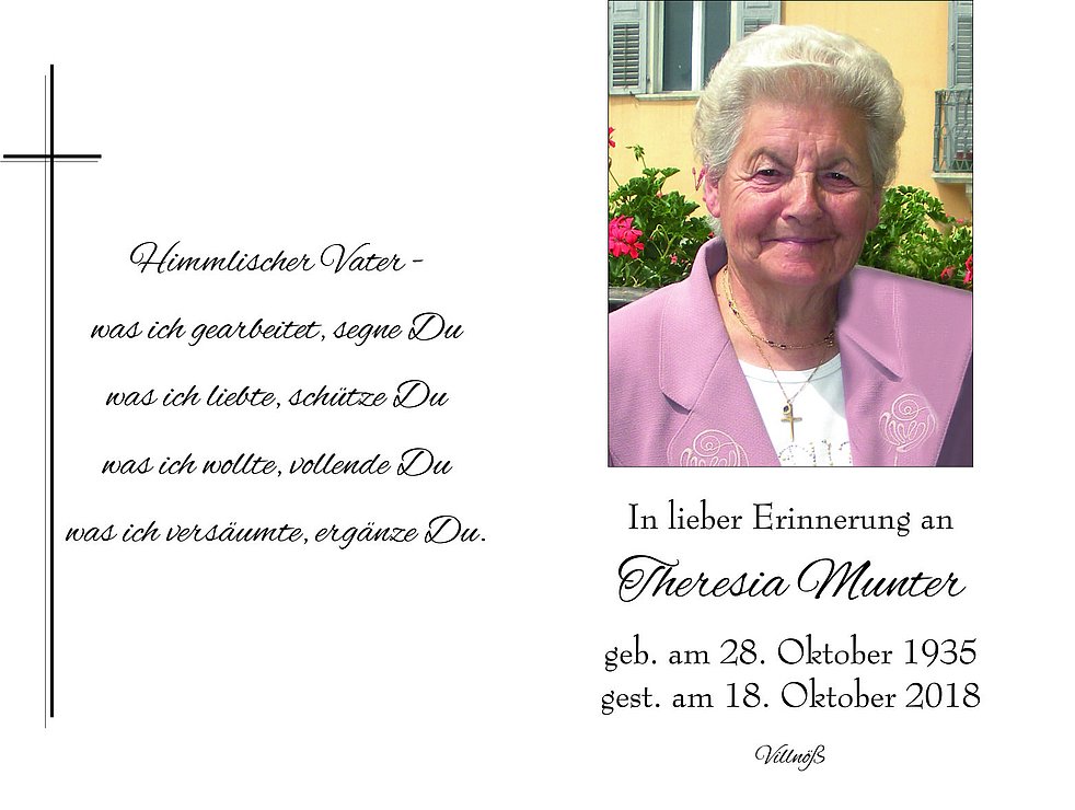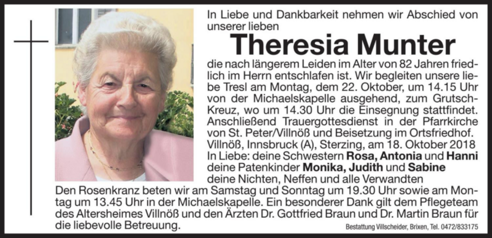 Begräbnisgottesdienst: 22.10. - 14:30 Uhr St. Peter/Villnöß