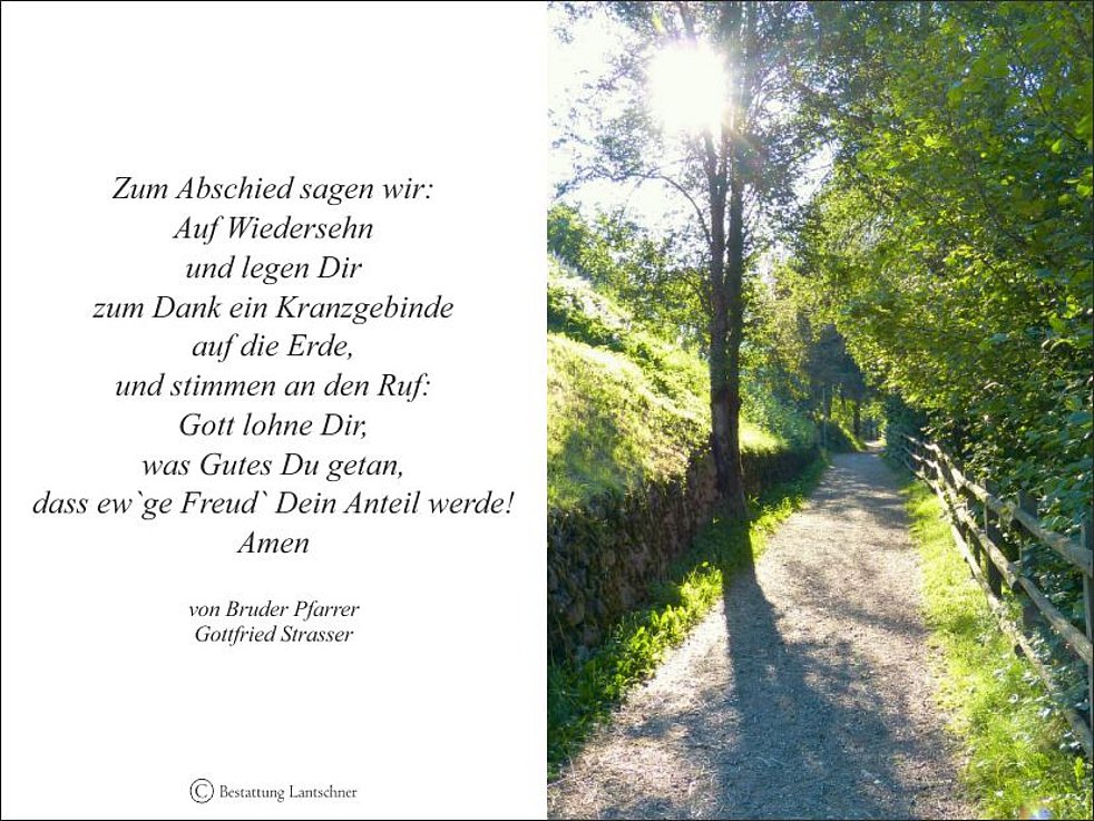 In Liebe verabschieden wir uns beim Begräbnisgottesdienst am Mittwoch, 11. Juli, um 15 Uhr