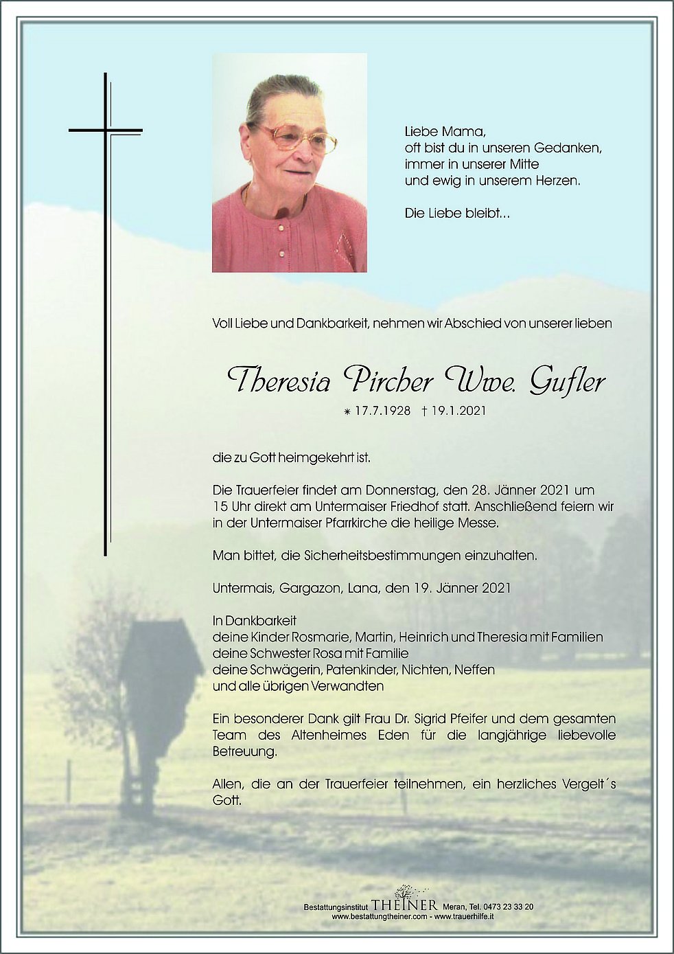 Die Trauerfeier findet am Donnerstag, den 28. Jänner 2021 um 15 Uhr direkt am Untermaiser Friedhof statt. Anschließend feiern wir in der Untermaiser Pfarrkirche die heilige Messe.