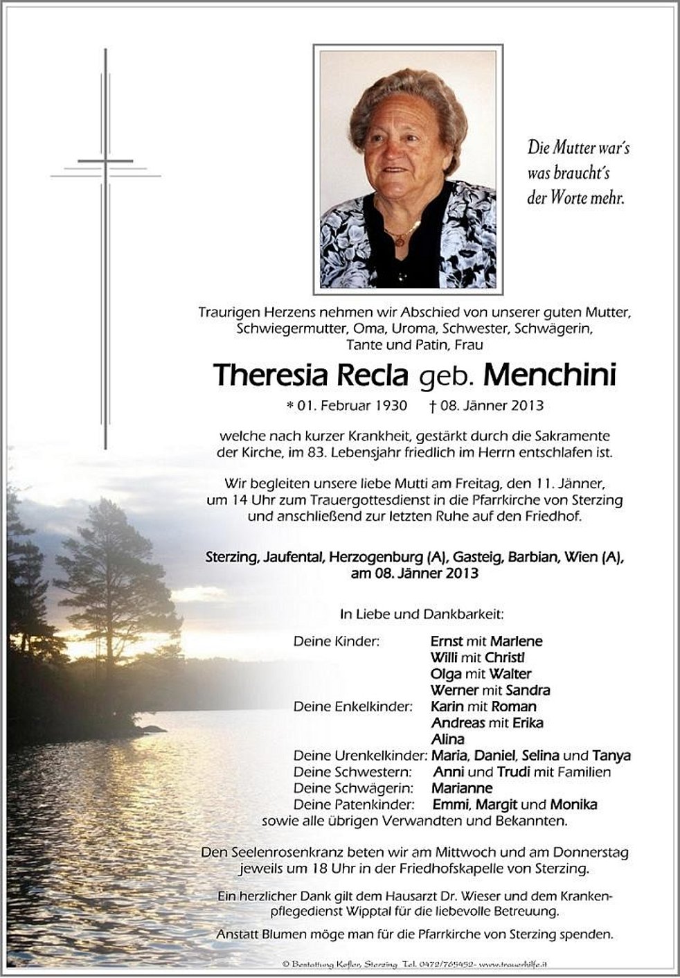 Anstatt Blumen möge man für die Pfarrkirche von Sterzing spenden.