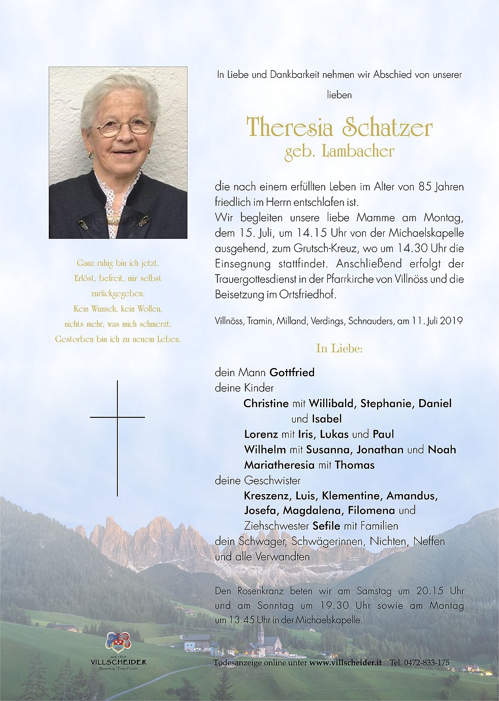 Begräbnisgottesdienst: 15.07. - 14:30 Uhr Villnöss