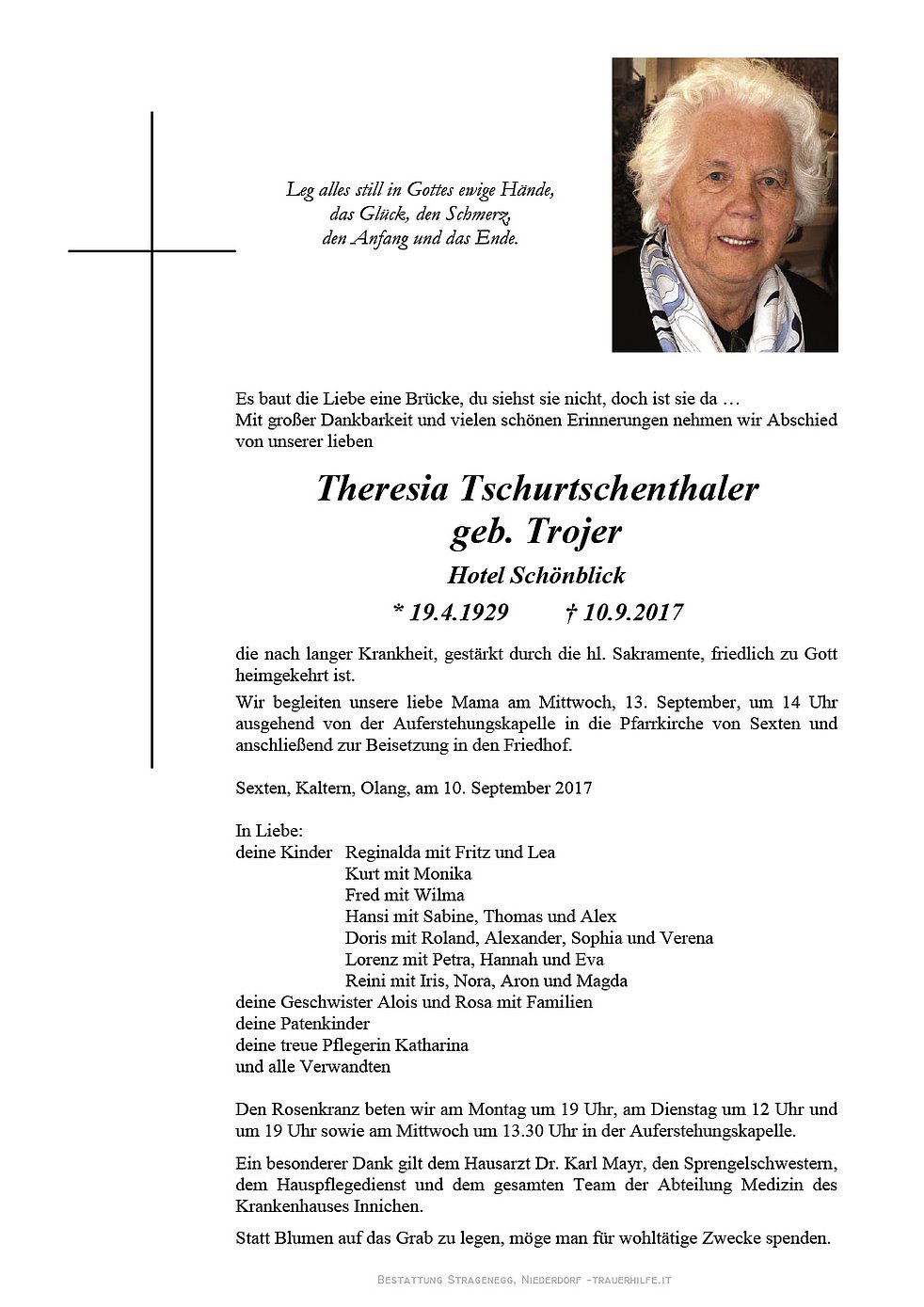 Wir begleiten unsere liebe Mama am Mittwoch, 13. September, um 14 Uhr ausgehend von der Auferstehungskapelle in die Pfarrkirche von Sexten und anschließend zur Beisetzung in den Friedhof.