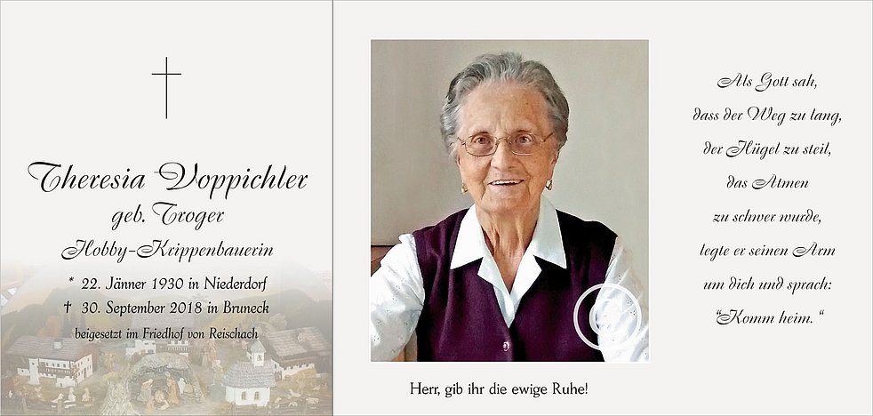 * 22. Jänner 1930 in Niederdorf † 30. September 2018 in Bruneck