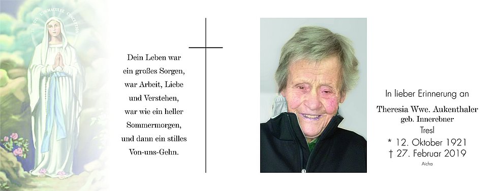 Begräbnisgottesdienst: 02.03. - 11:00 Uhr Aicha