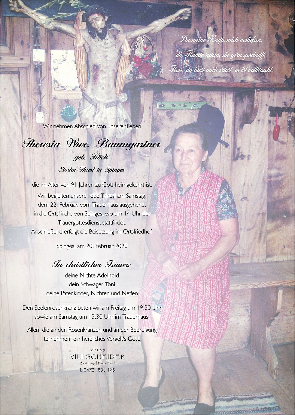 Begräbnisgottesdienst: 22.02. - 14:00 Uhr Spinges