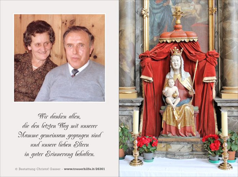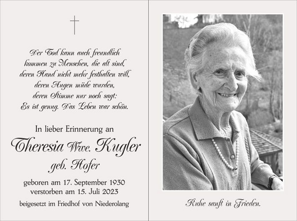 Unsere liebe Mamme ist ab Montagmittag in der St.-Michael-Kapelle von Niederolang aufgebahrt.