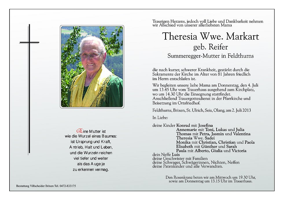 Wir begleiten unsere liebe Mama am Donnerstag, den 4. Juli