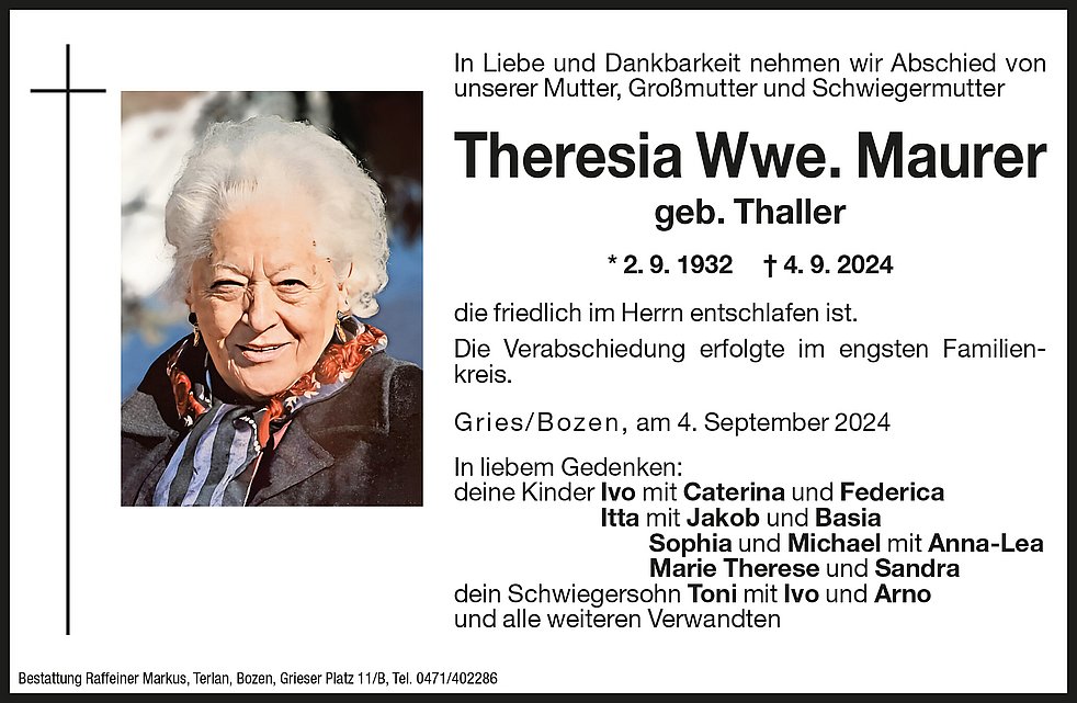 In Liebe und Dankbarkeit nehmen wir Abschied von unserer Mutter, Großmutter und Schwiegermutter