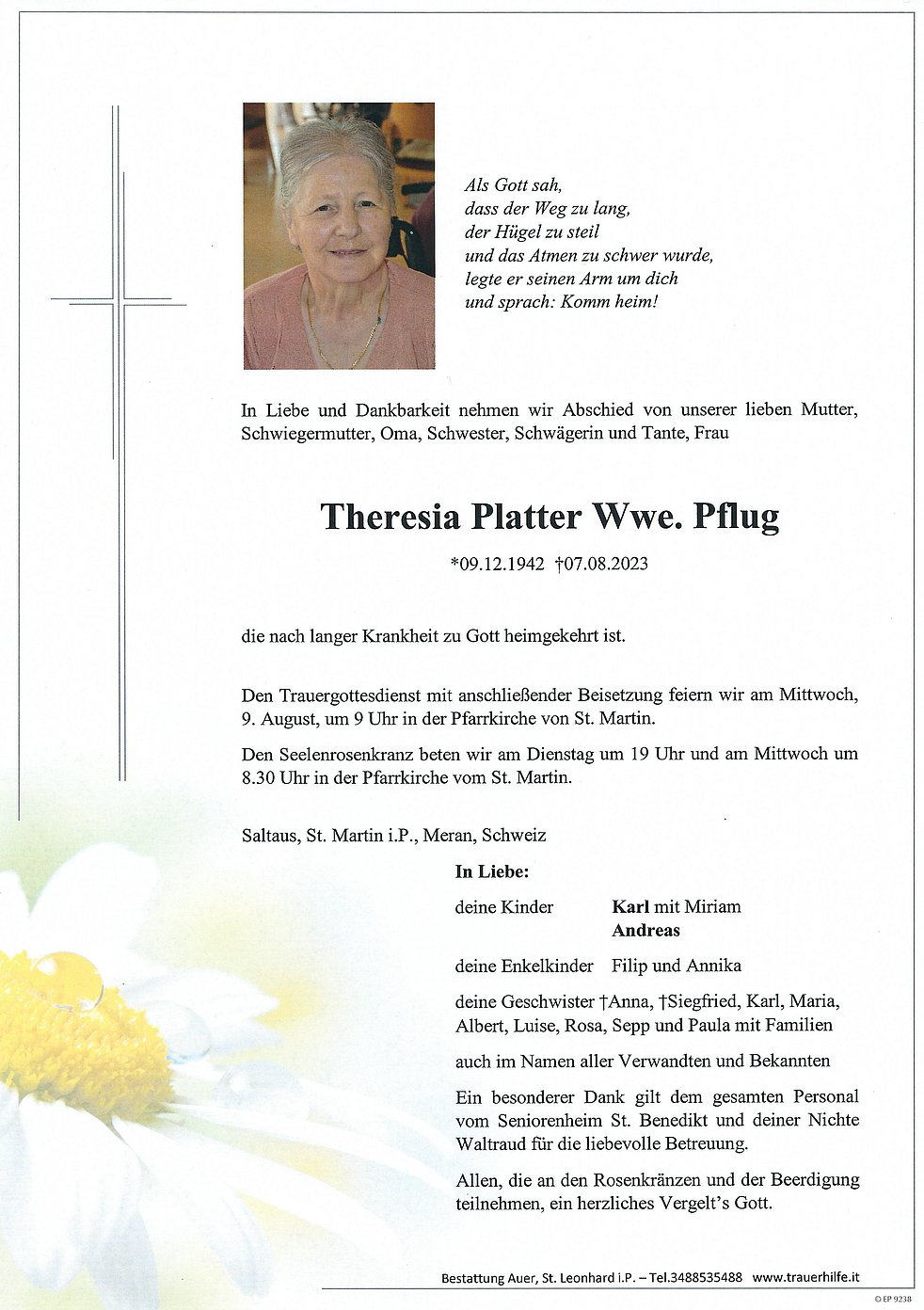 Allen, die an den Rosenkränzen und der Beerdigung teilnehmen, ein herzliches Vergelt’s Gott.