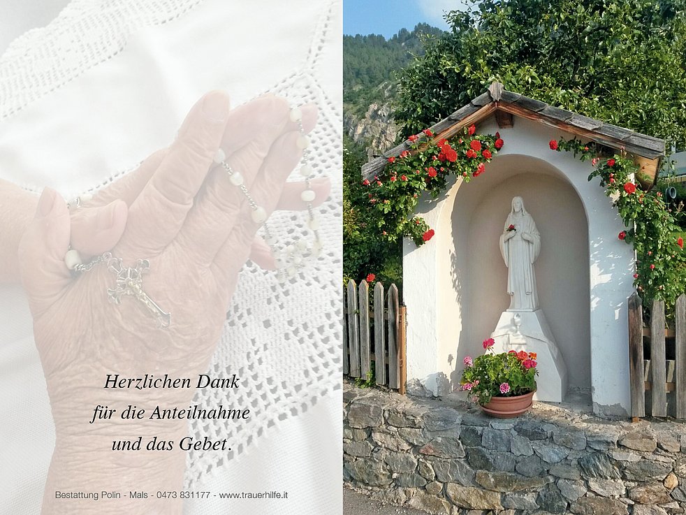 Allen, die am Rosenkranz und an der Beerdigung teilnehmen, ein herzliches Vergelt’s Gott.