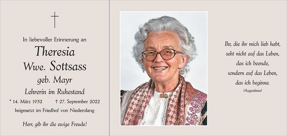 Ein herzliches Vergelt’s Gott gilt allen, die unsere Mama liebevoll betreut und begleitet haben sowie uns hilfreich zur Seite standen.