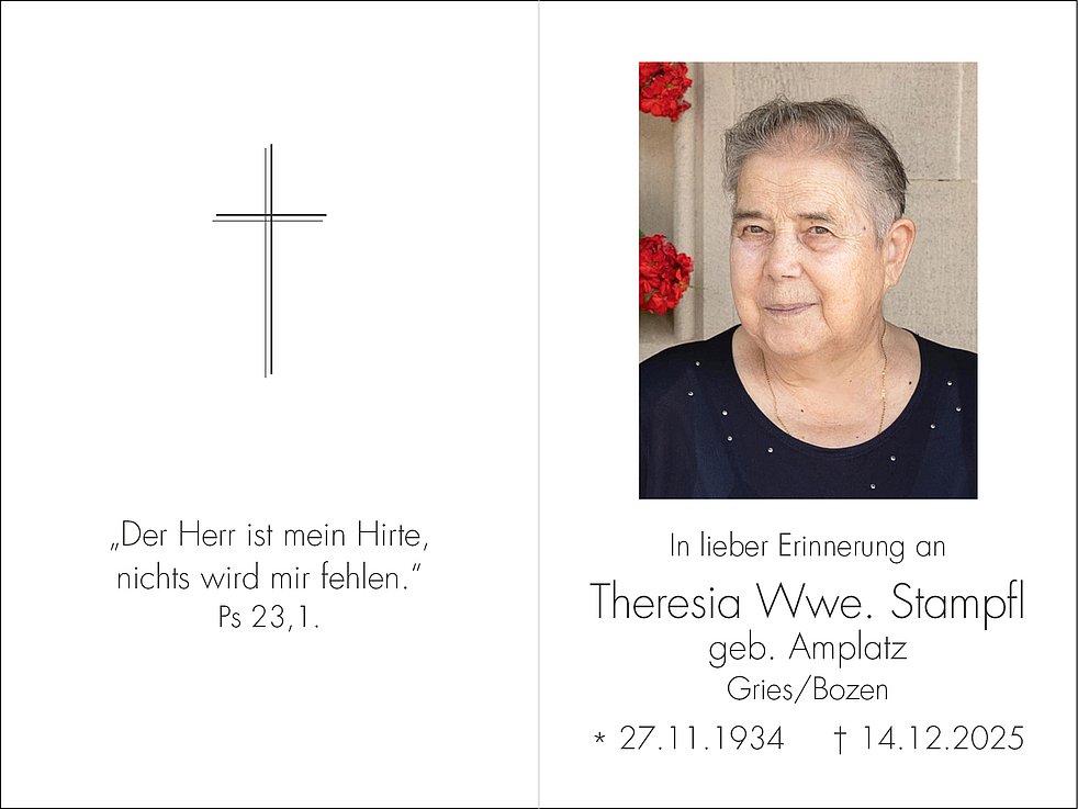 Den Trauergottesdienst mit anschließender Einsegnung feiern wir am Donnerstag, den 18. Dezember, um 14.30 Uhr in der Stiftspfarrkirche von Gries.