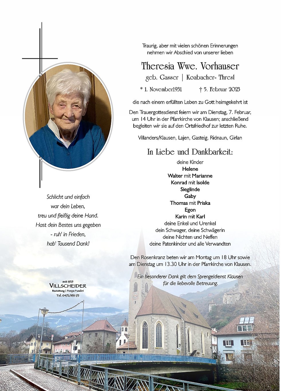 unser aufrichtiges Beileid, die Gedanken sind bei euch und Gedenken eurer liebenswerten Mutter Thresl.