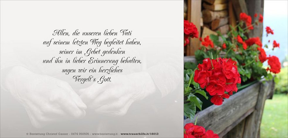 Vergelt‘s Gott allen, die an den Seelenrosenkränzen und an der Trauerfeier von unserem lieben Vati teilnehmen und ihn in guter Erinnerung behalten.