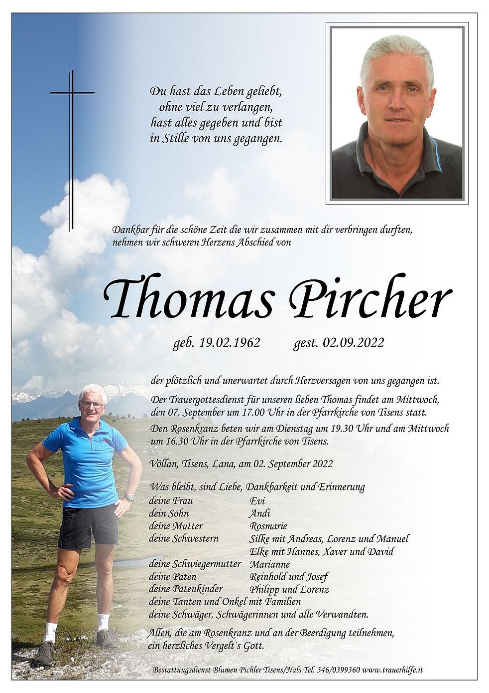 Der Trauergottesdienst für unseren lieben Thomas findet am Mittwoch,