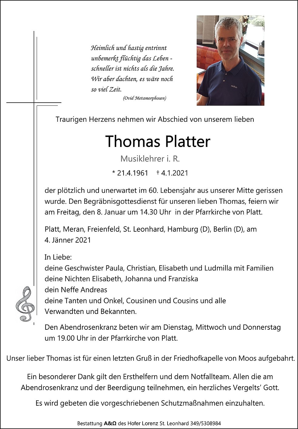 wurde. Den Begräbnisgottesdienst für unseren lieben Thomas, feiern wir