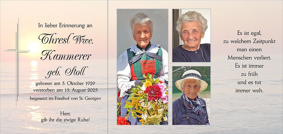 Unsere liebe Mamme ist ab Samstagnachmittag in der Friedhofskapelle von St. Georgen aufgebahrt.