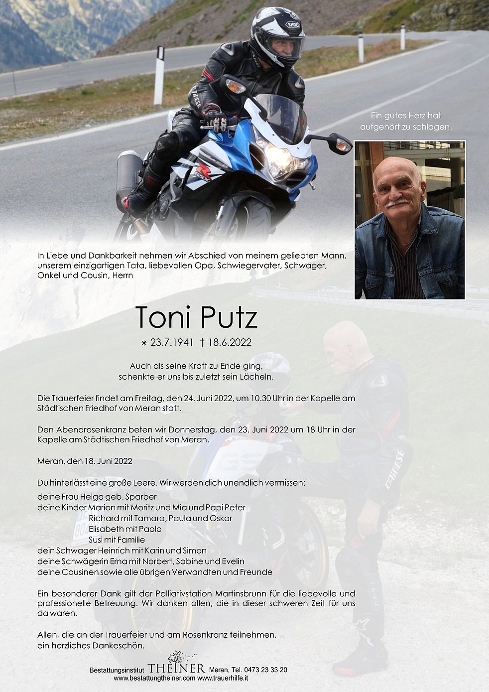 Die Trauerfeier findet am Freitag, den 24. Juni 2022, um 10.30 Uhr in der Kapelle am Städtischen Friedhof von Meran statt.