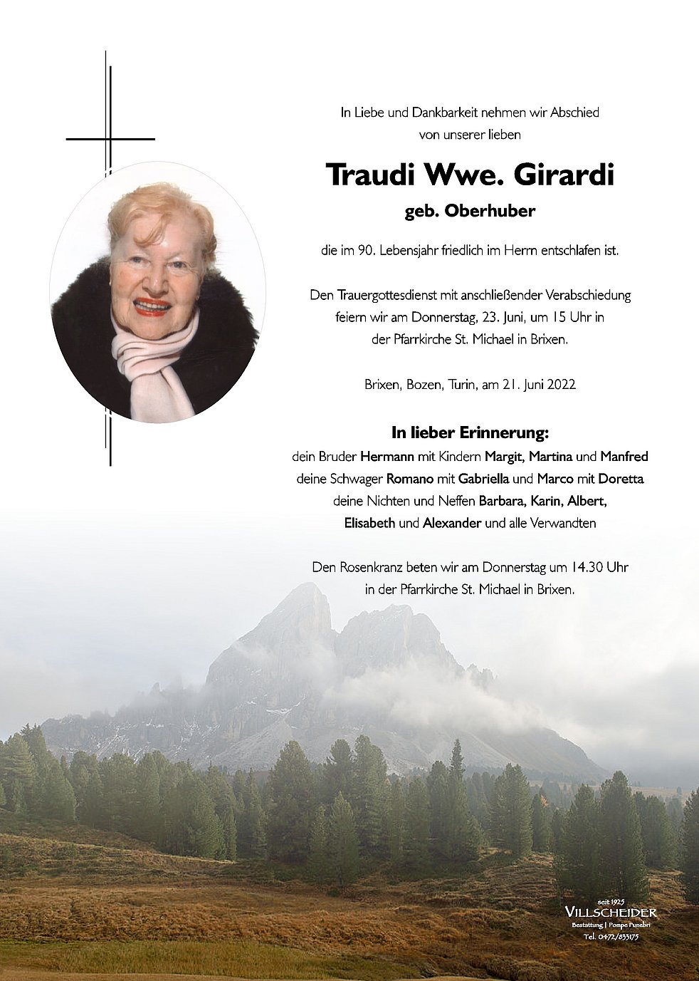 Trauerfeier: 23.06. - 15:00 Uhr Brixen; Bressanone