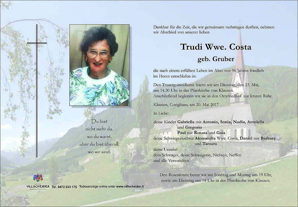 Den Trauergottesdienst feiern wir am Dienstag, den 23. Mai,