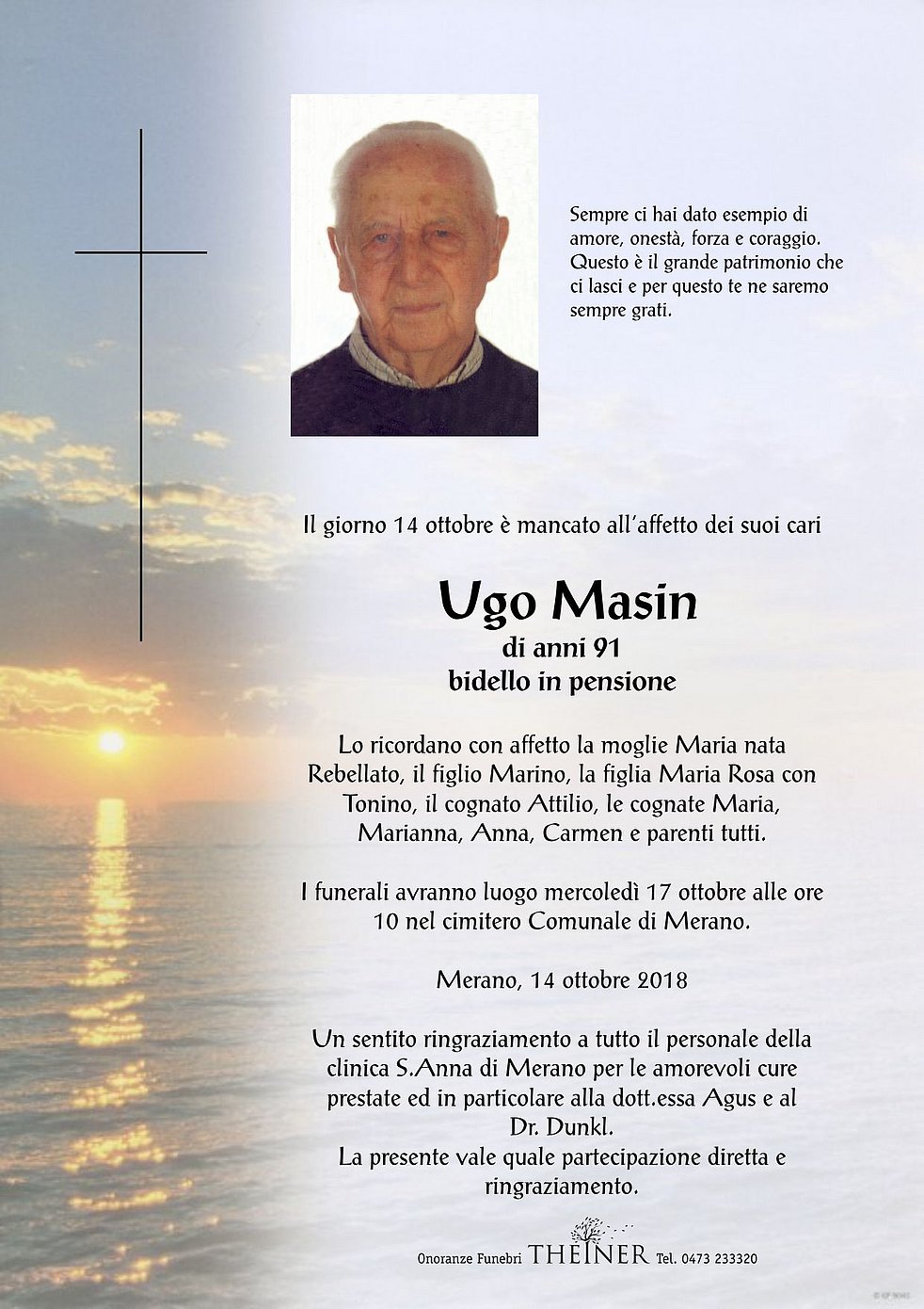 I funerali avranno luogo mercoledì 17 ottobre alle ore 10 nel cimitero Comunale di Merano.