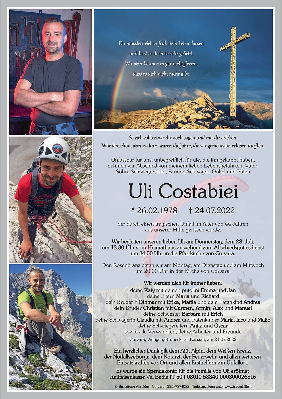 SPENDENKONTO HINTERBLIEBENE COSTABIEI ULRICH