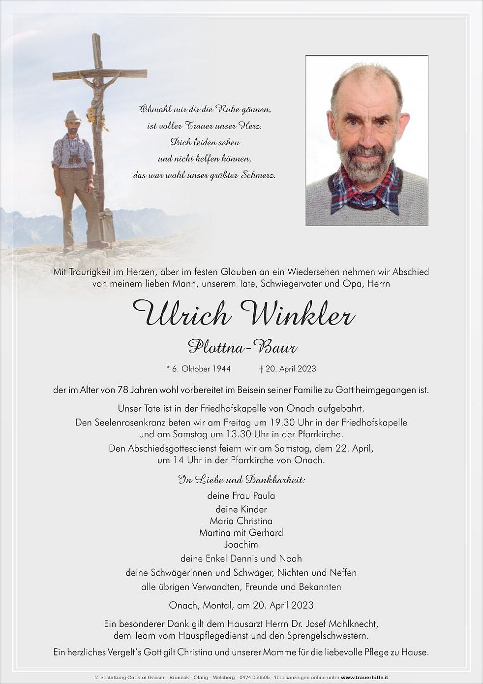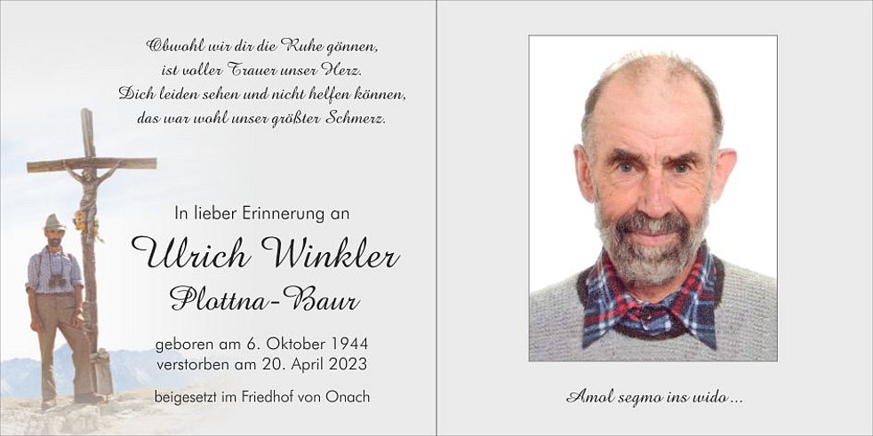Mit Traurigkeit im Herzen, aber im festen Glauben an ein Wiedersehen nehmen wir Abschied von meinem lieben Mann, unserem Tate, Schwiegervater und Opa, Herrn