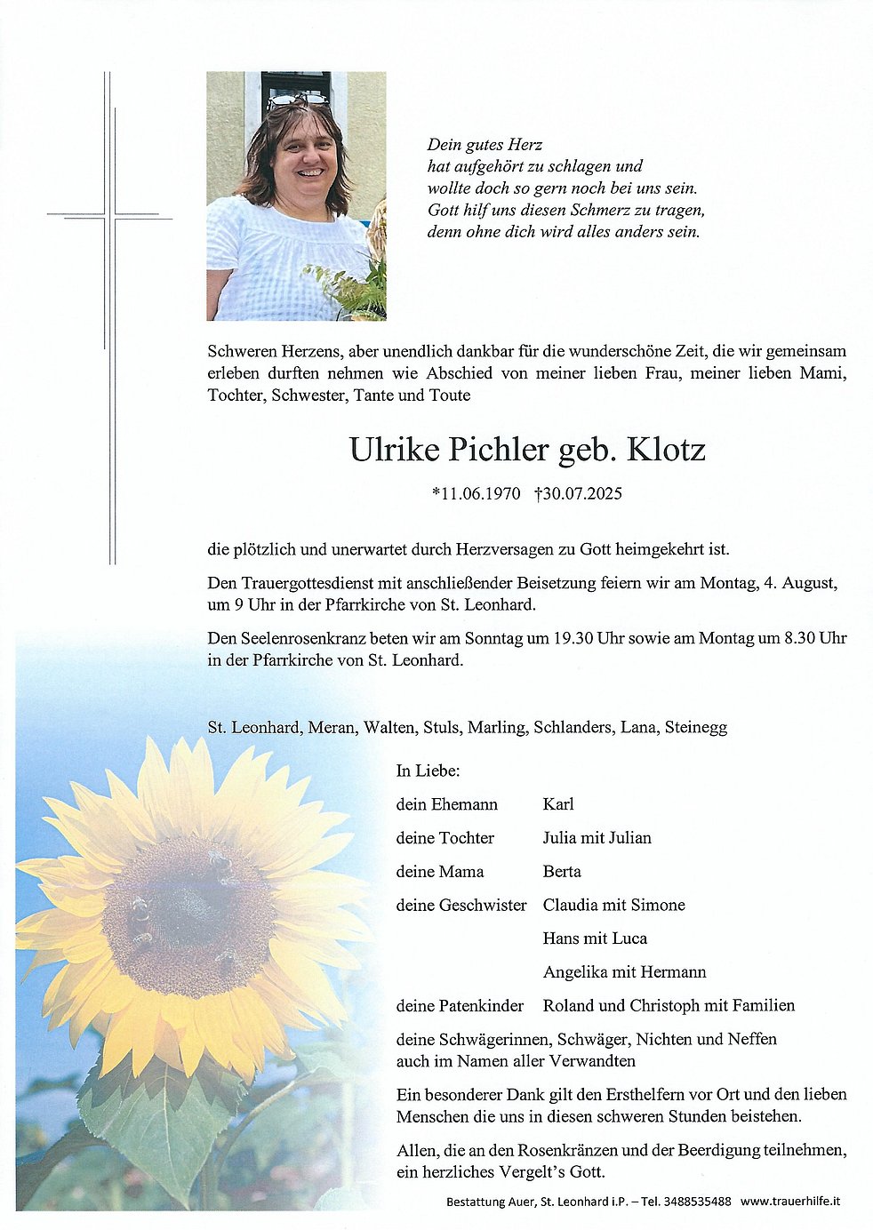 Allen, die an den Rosenkränzen und der Beerdigung teilnehmen, ein herzliches Vergelt’s Gott.