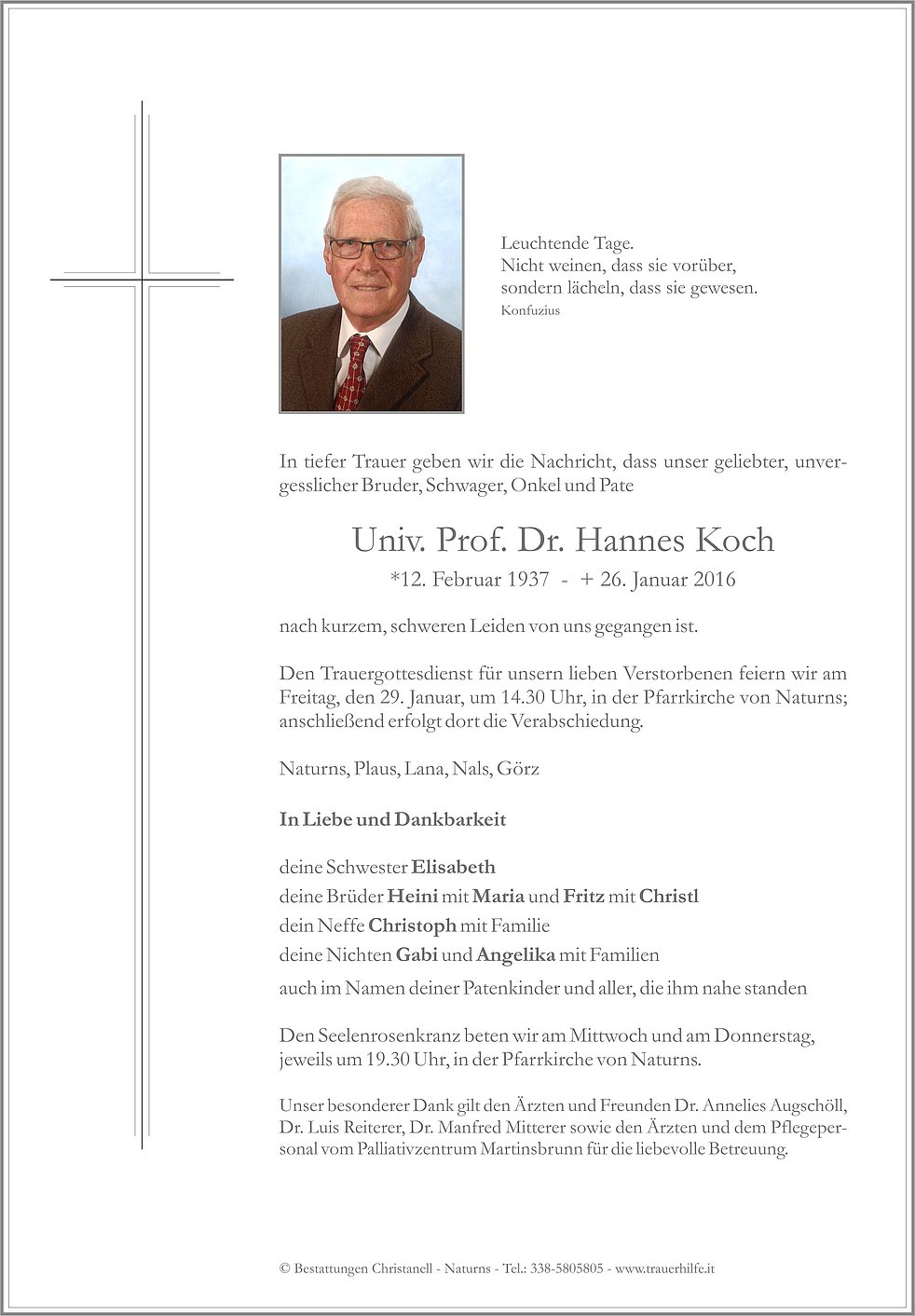 Den Trauergottesdienst für unsern lieben Verstorbenen feiern wir am Freitag, den 29. Januar, um 14.30 Uhr, in der Pfarrkirche von Naturns; anschließend erfolgt dort die Verabschiedung.