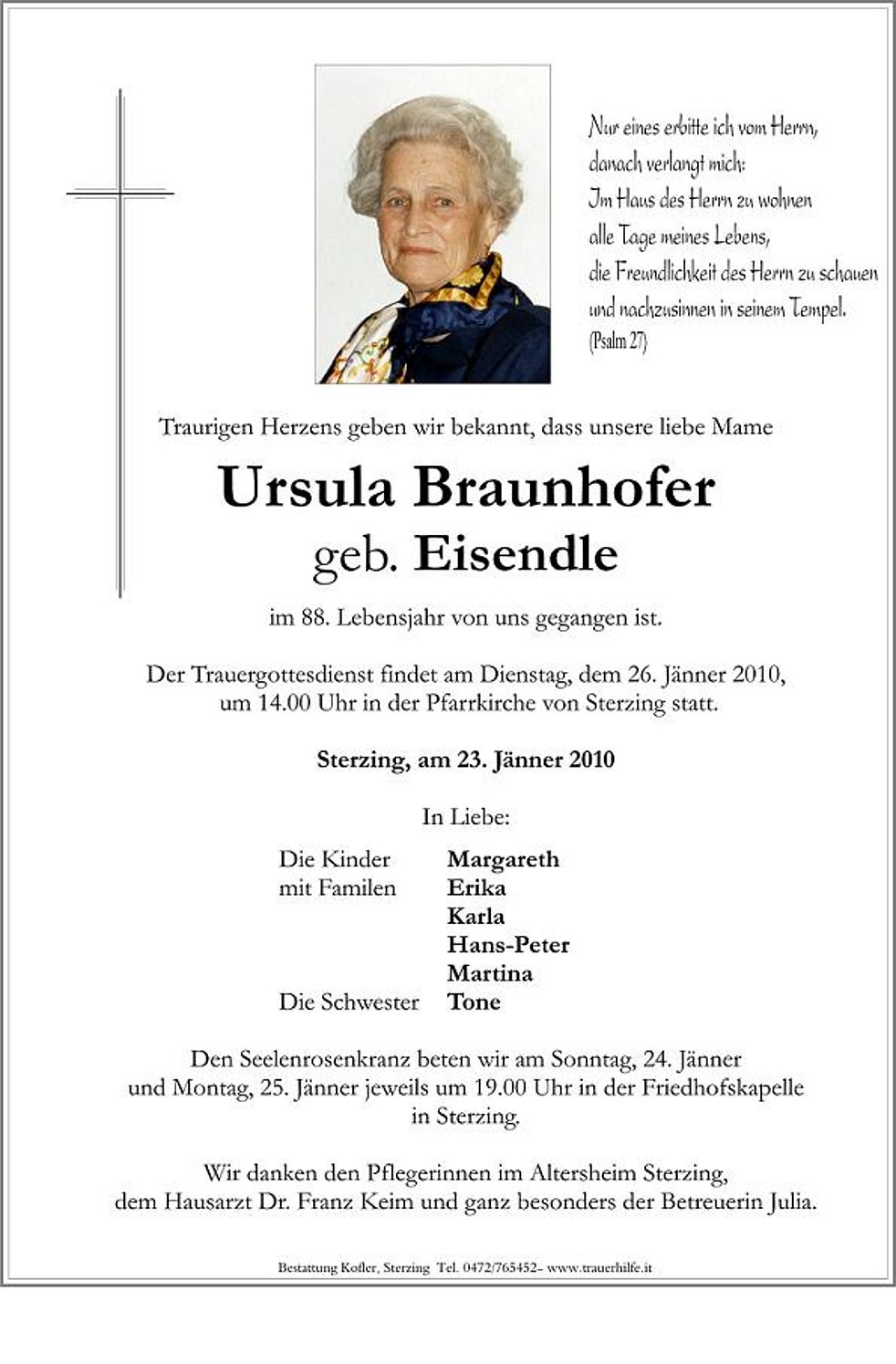 Der Trauergottesdienst findet am Dienstag, dem 26. Jänner 2010,
