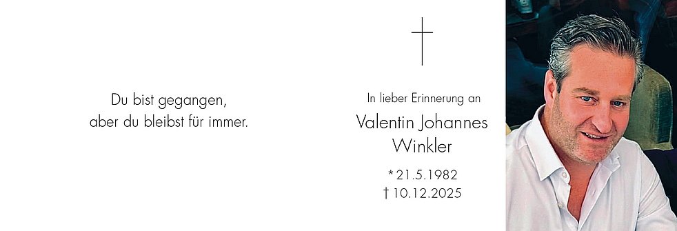 Wir nehmen in Liebe Abschied in der Girlaner Pfarrkirche, am Samstag, dem 20. Dezember um 14 Uhr und begleiten unseren geliebten Valentin anschließend auf den Ortsfriedhof.