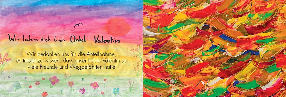 Wir bedanken uns für die Anteilnahme, es tröstet uns zu wissen, dass unser lieber Valentin so viele Freunde und liebe Weggefährten hatte.