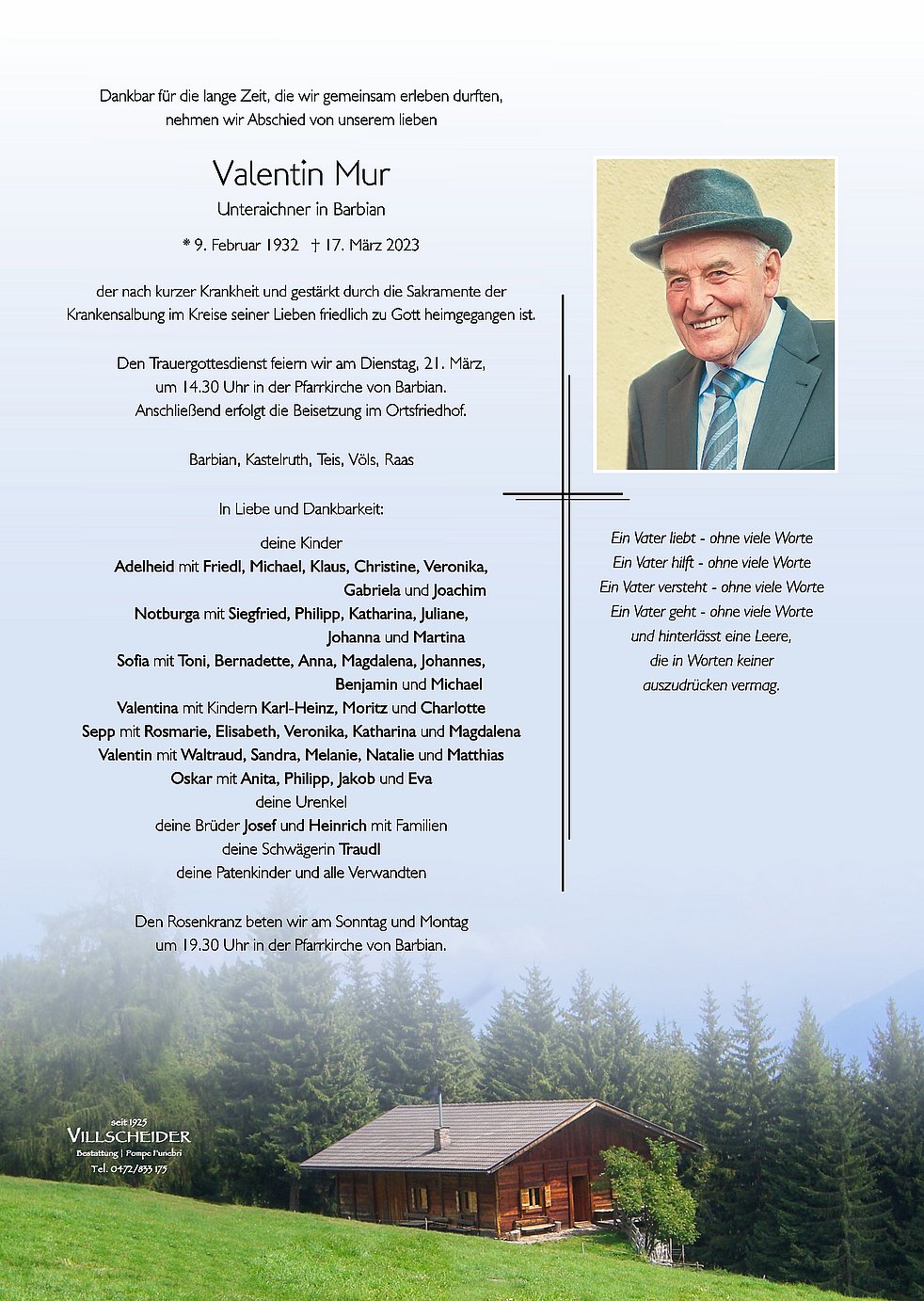 Liebe Burgi, liebe Trauerfamilie i wünsch enk gonz viel Kroft.