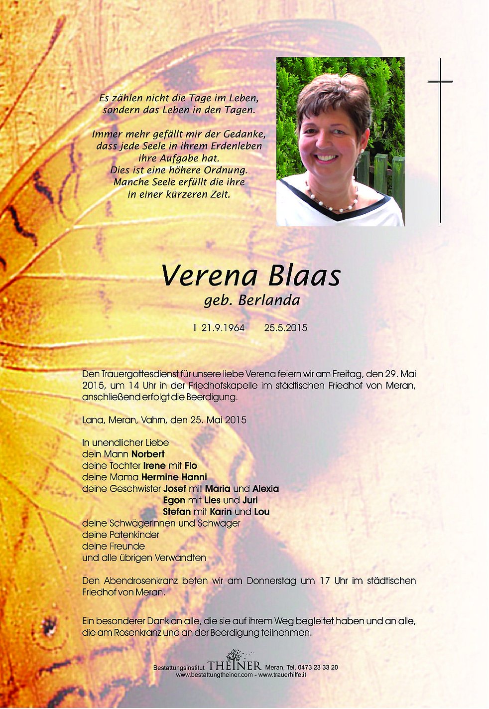 Den Trauergottesdienst für unsere liebe Verena feiern wir am Freitag, den 29. Mai