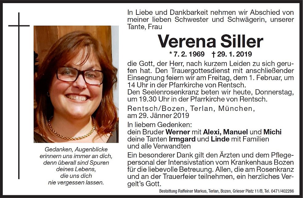 Den Trauergottesdienst mit anschließender Einsegnung feiern wir am Freitag, dem 1. Februar, um 14 Uhr in der Pfarrkirche von Rentsch.