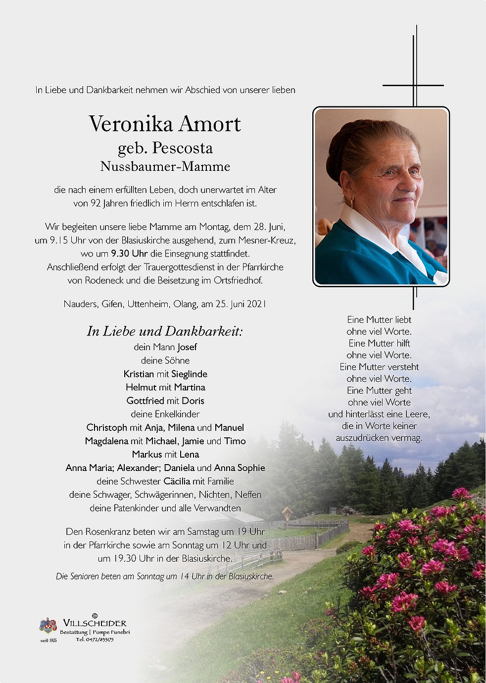 Begräbnisgottesdienst: 28.06. - 09:30 Uhr Rodeneck