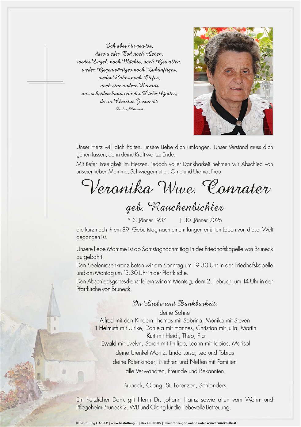 Unsere liebe Mamme ist ab Samstagnachmittag in der Friedhofskapelle von Bruneck aufgebahrt.