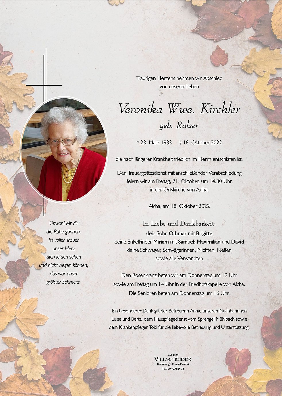 Trauerfeier: 21.10. - 14:30 Uhr Aicha
