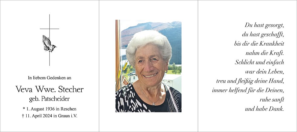 Wenn die Kraft versiegt,die Sonne nicht mehr wärmt, der Schmerz das Lächeln einholt, dann ist ewiger Friede eine Erlösung! Liebe Verena ,unser Beileid gilt dir und den ganzen Trauerfamilien.