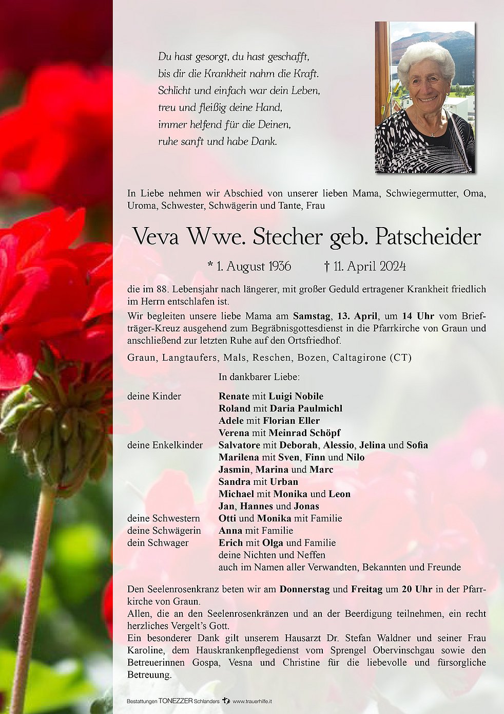 Liebe Veva Ruhe in Frieden Du gutes Mutterherz unser aufrichtiges Beileid und viel Kraft