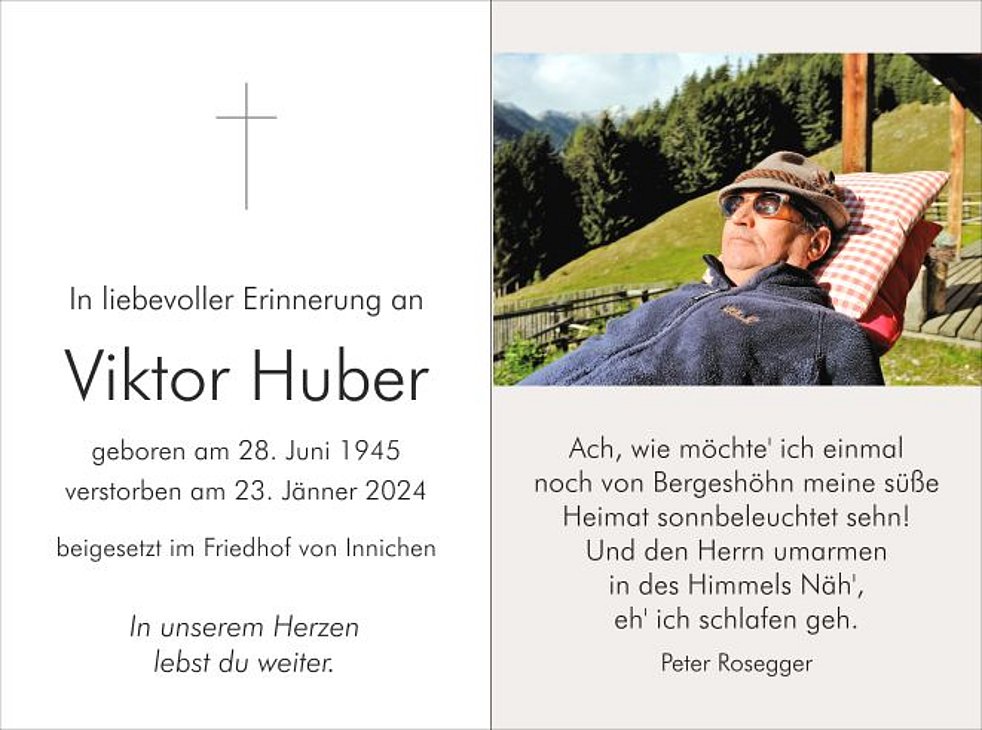 Unser lieber Tata ist ab Montag im Außerkirchl aufgebahrt. Dort beten wir den Seelenrosenkranz am Montag um 19.30 Uhr sowie am Dienstag um 13.15 Uhr.