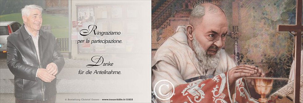 Der Trauergottesdienst findet am Montag, 8. Jänner, um 15.30 Uhr in der Pfarrkirche von Bruneck statt.