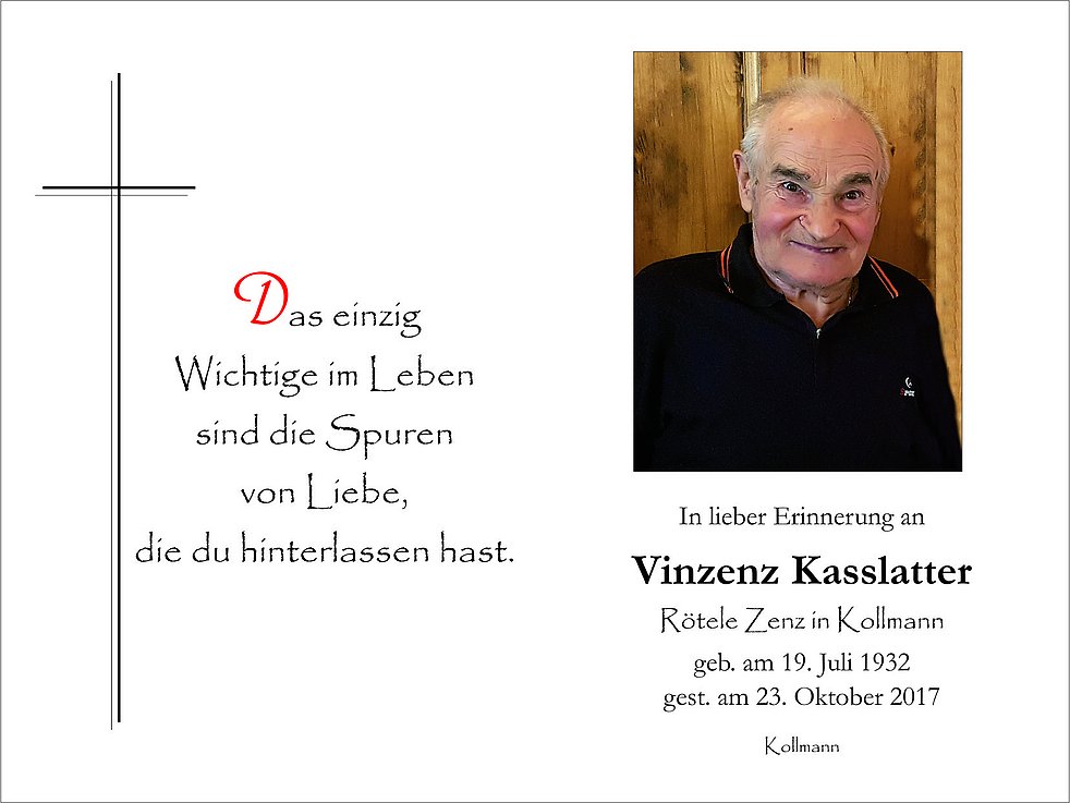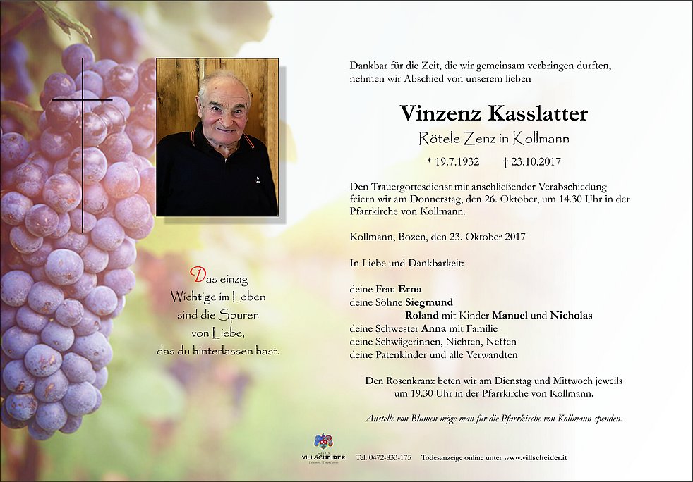 Anstelle von Blumen möge man für die Pfarrkirche von Kollmann spenden.