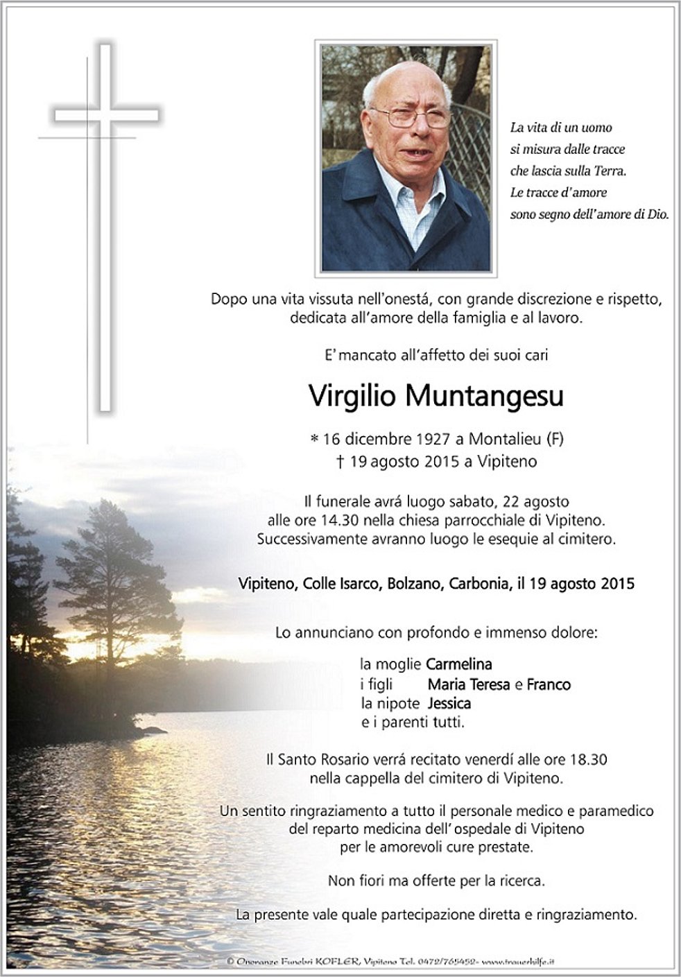 Der Trauergottesdienst findet am Samstag, dem 22. August um 14.30 Uhr in der Pfarrkirche von Sterzing statt; anschließend begleiten wir ihn zur letzten Ruhe auf den Friedhof.